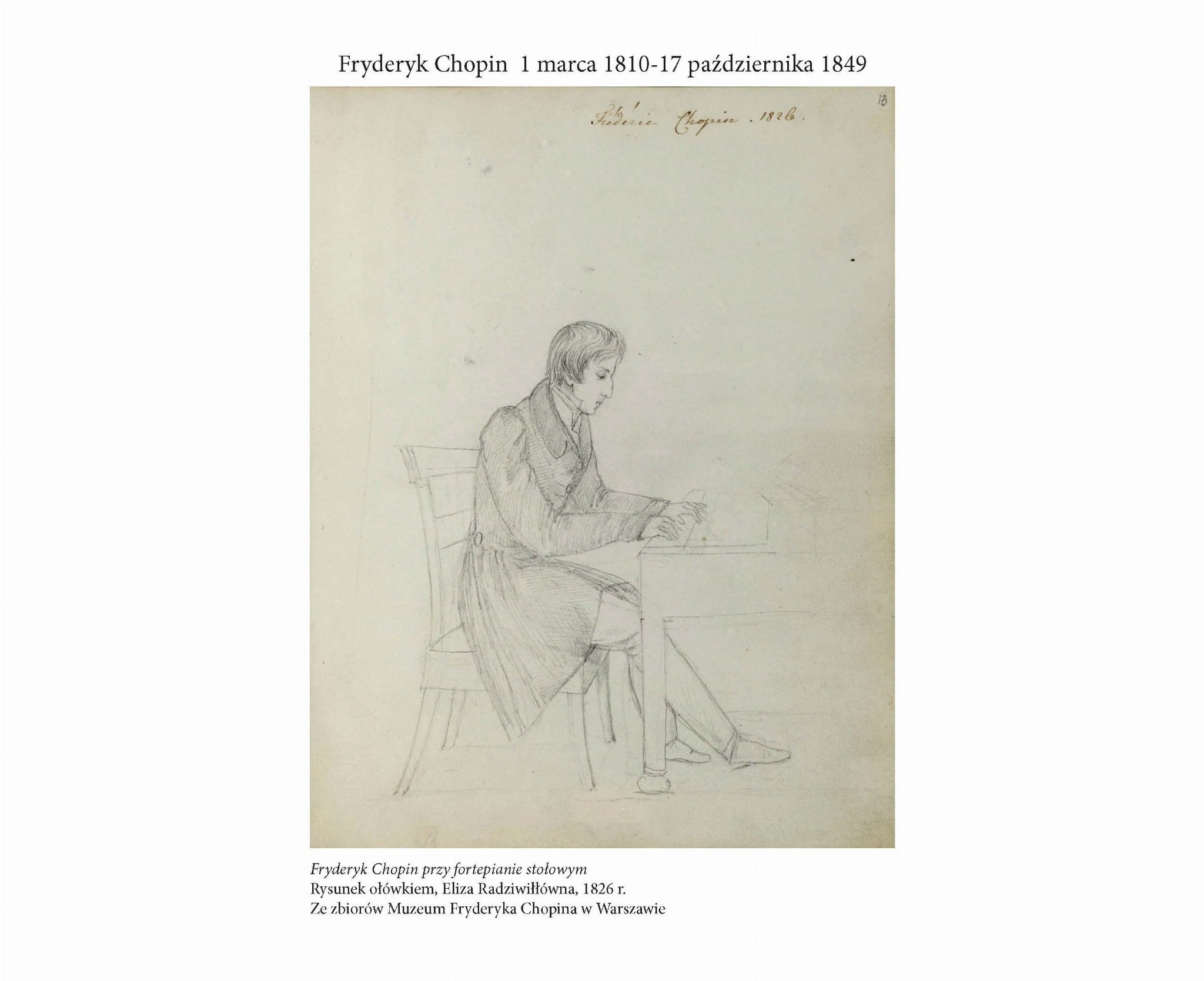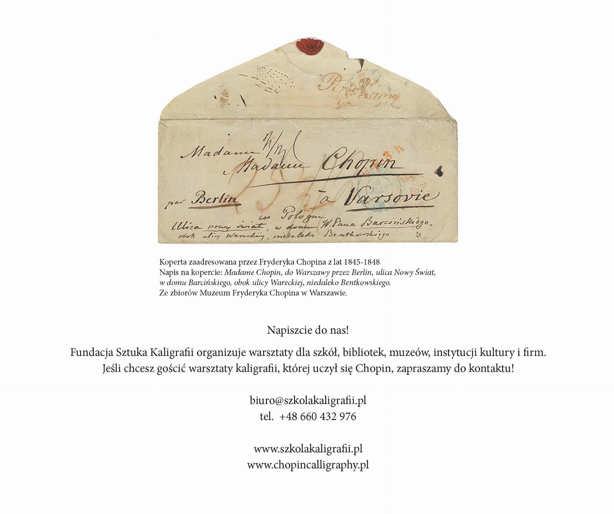 - faksymile listów i rękopisów Chopina oraz inne ciekawe informacje o młodym Fryderyku, kaligrafii i muzyce!