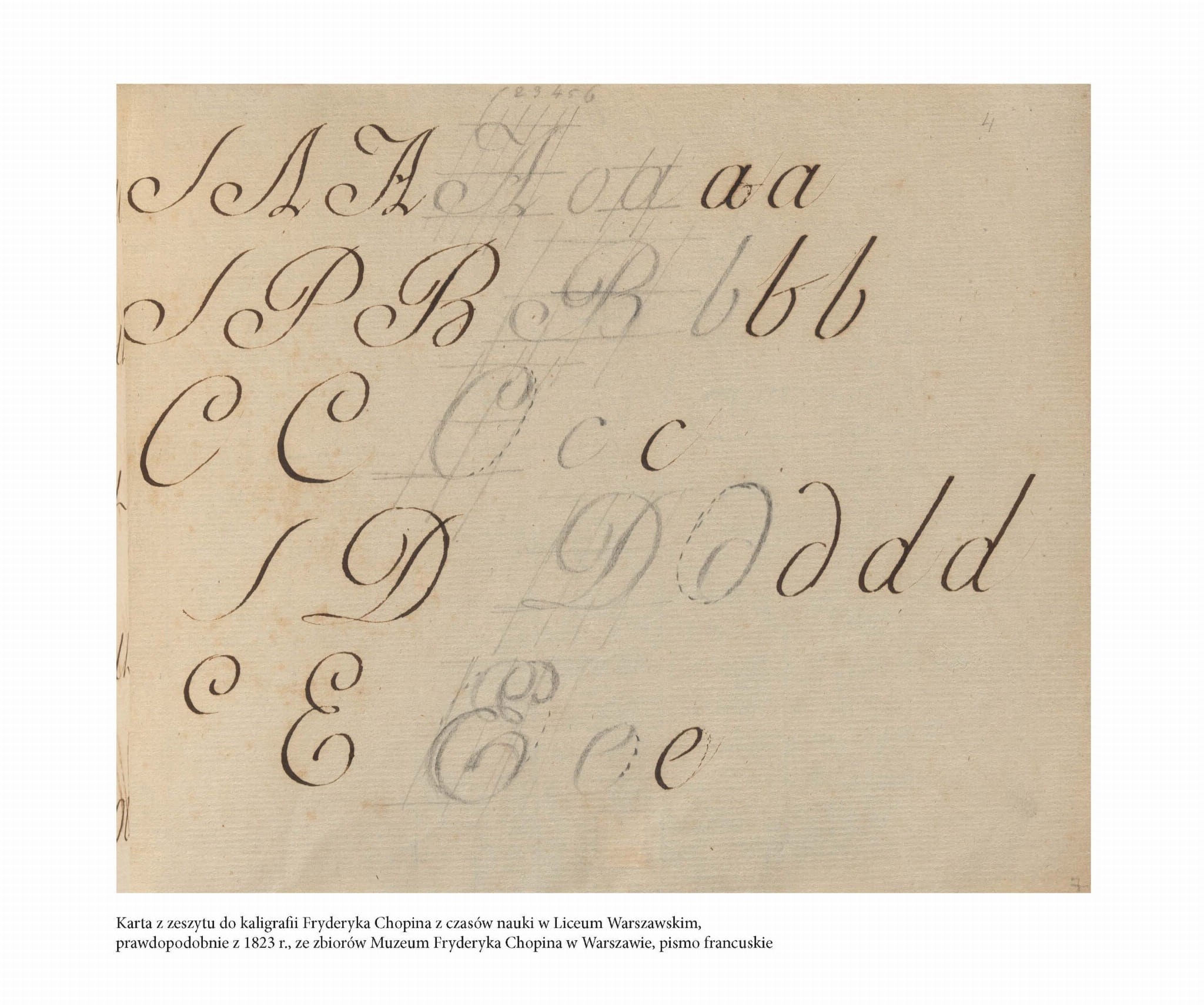 - faksymile kart z zeszytu do kaligrafii Chopina,