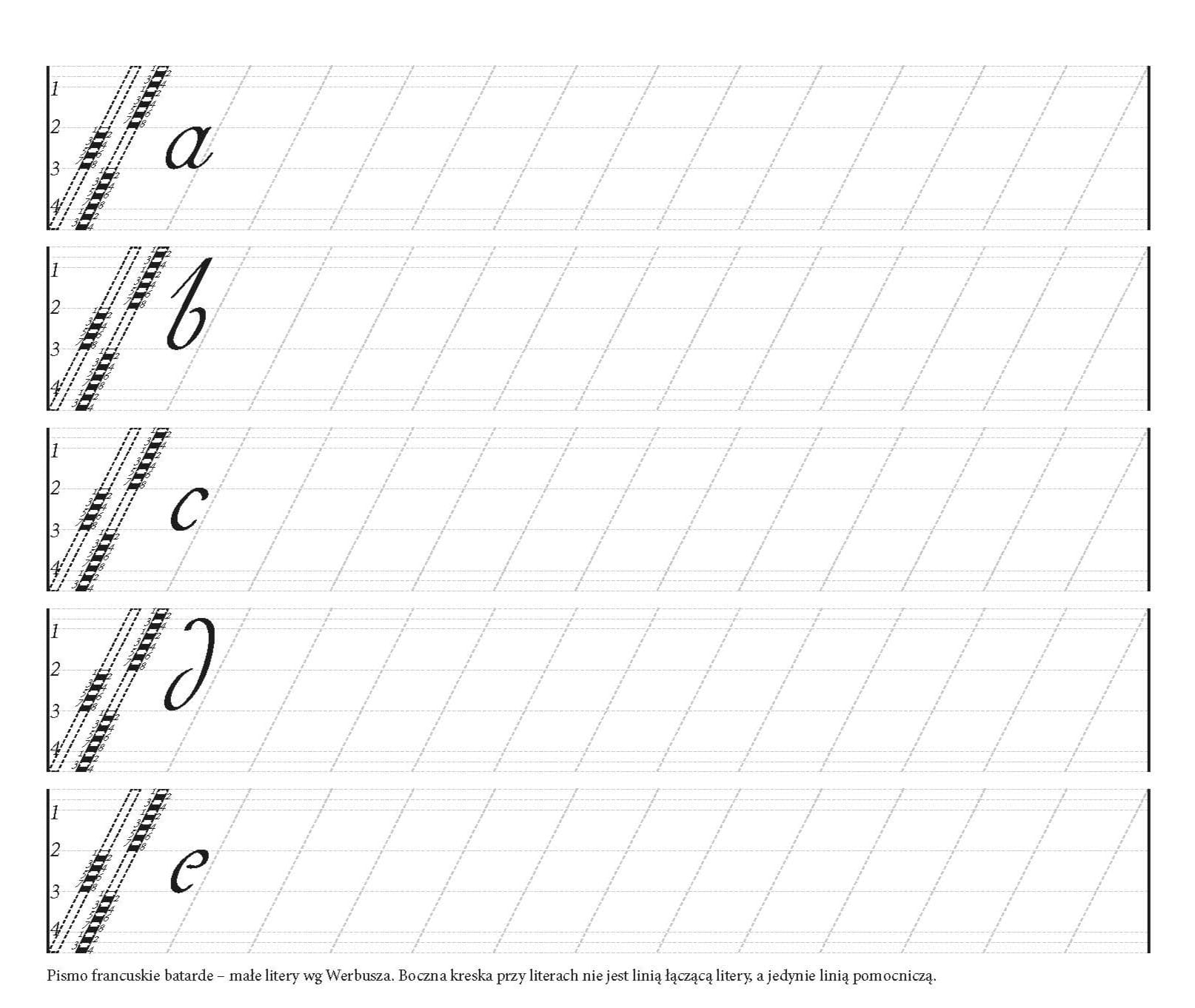 - wzornik pisma francuskiego: małe i duże litery,